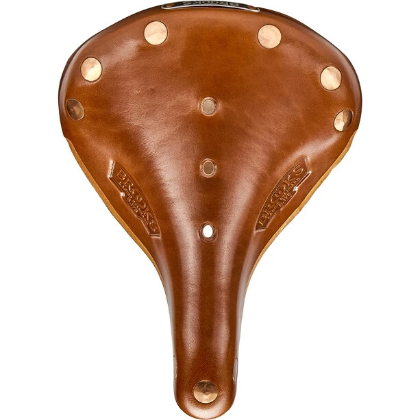 La B17 est le modèle phare de Brook, une selle confortable pour le tourisme, la ville, le trekking ou le vélo de route. Depuis plus de 100 ans, le B17 en cuir véritable de tannage végétal, en acier chromé couleur cuivre et en rivets de cuivre martelés à la main est notre best-seller incontesté. La version courte est conçue comme une selle spéciale pour les femmes, mais elle convient également aux petits cavaliers.