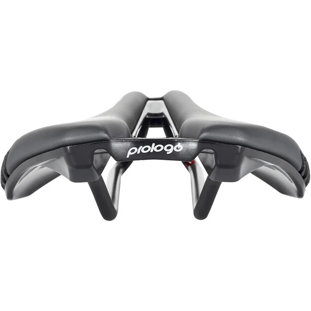 La selle PROLOGO Dimension NDR Rails Tirox est un modèle spécial dans la gamme du fabricant, qui se caractérise à la fois par une largeur très large (143 mm), une longueur réduite et un nez très court (30 à 35 mm de moins que les modèles classiques) Ceci dans le but d’offrir un haut niveau de confort et de performance, notamment pour les coureurs très sensibles à la hauteur du périnée.