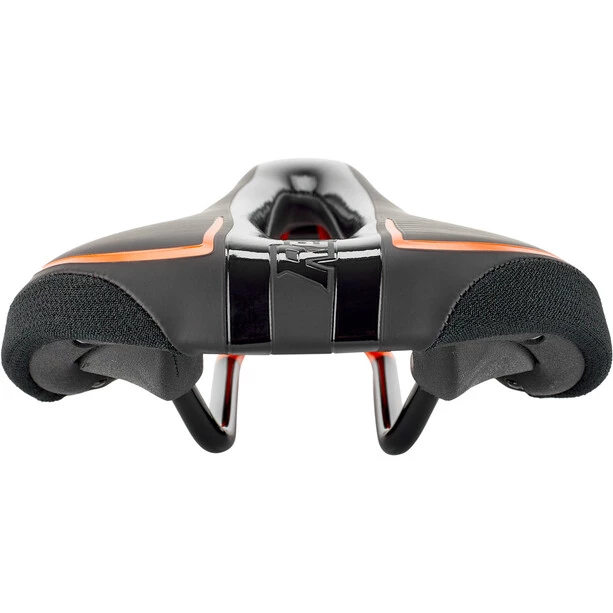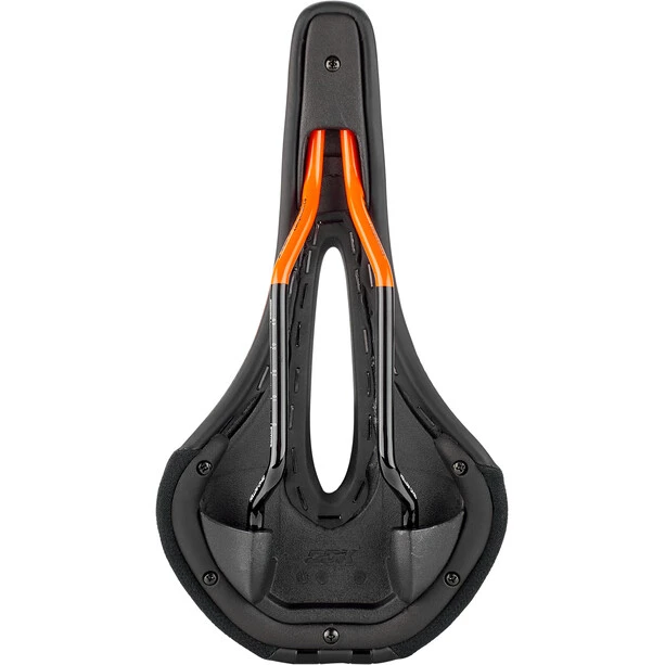 La pression dans la zone du barrage est déviée de manière optimale par le canal de décharge, ce qui augmente en outre le confort d’assise. Le Kevlar a été incorporé dans la partie arrière de la selle pour la protéger contre les dommages.