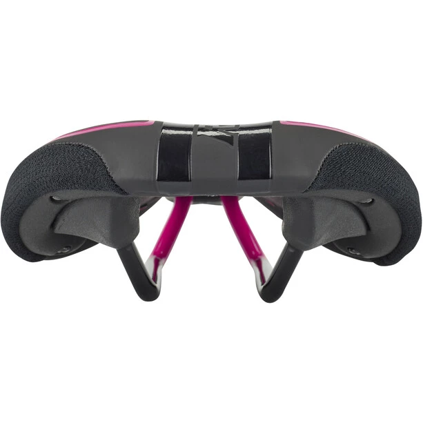 La pression dans la zone du barrage est déviée de manière optimale par le canal de décharge, ce qui augmente en outre le confort d’assise. Le Kevlar a été incorporé dans la partie arrière de la selle pour la protéger contre les dommages.