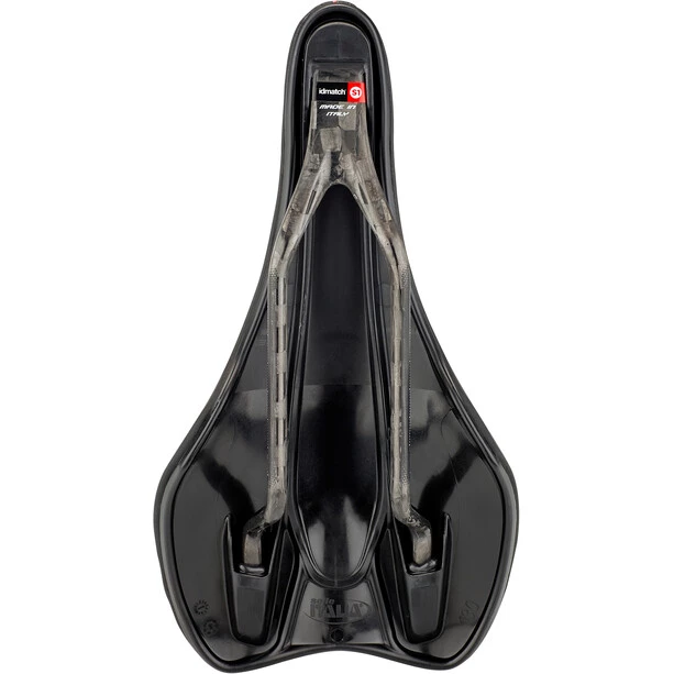 La SLR Boost dispose d’une ligne noire brillante, visible sur le dessous de la selle, qui indique la position du BRP (point de référence biomécanique). Le BRP est le point où la largeur du siège est de 70 mm et où Selle Italia mesure les paramètres utiles pour un positionnement correct.