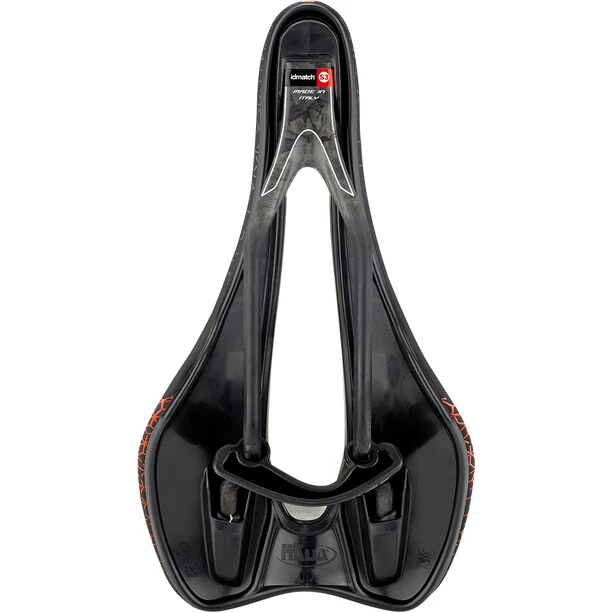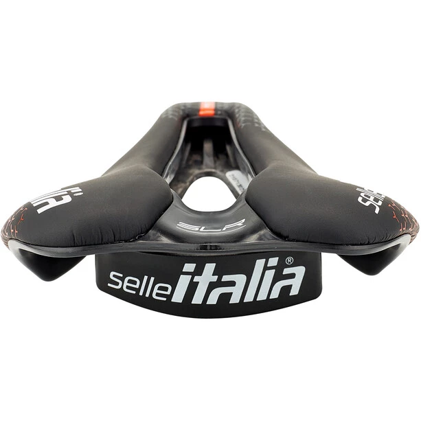 La SLR Boost dispose d’une ligne noire brillante, visible sur le dessous de la selle, qui indique la position du BRP (point de référence biomécanique). Le BRP est le point où la largeur du siège est de 70 mm et où Selle Italia mesure les paramètres utiles pour un positionnement correct.
