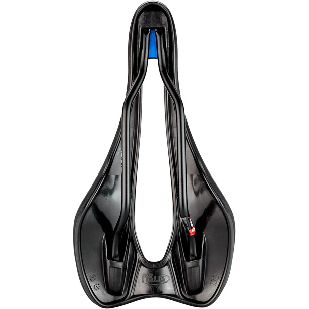 Le SLR Boost possède une ligne noire brillante visible sur la face inférieure de la selle qui indique la position du BRP (Biomechanical Reference Point). Le BRP est le point où la largeur du siège est de 70 mm et où les développeurs de Selle Italia mesurent les paramètres utiles pour un positionnement correct.
