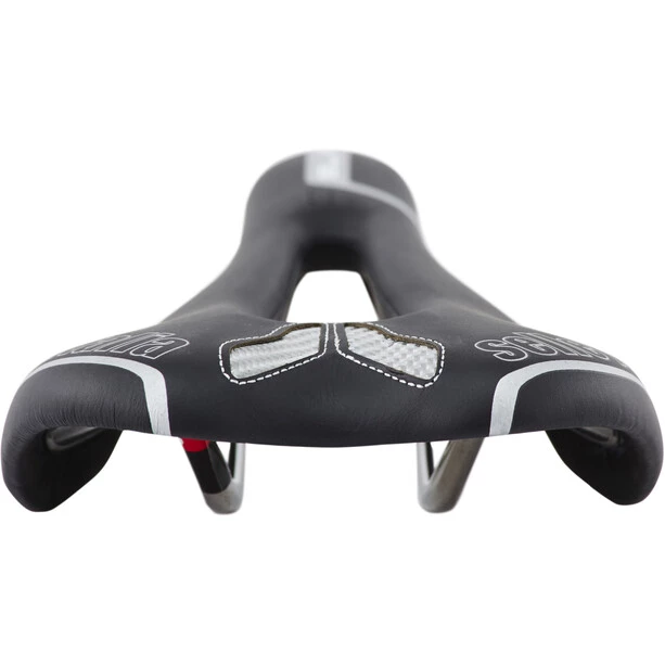La coque est conçue avec 30 % de carbone, et les rails bénéficient des propriétés mécaniques et de la légèreté du titane. Il en résulte une selle légère, 170 g, qui propose également un excellent confort. Grâce à son rembourrage et son large dégagement ajouré, elle réduit considérablement les points de pressions sur le périnée et vous permet d’être à l’aise longtemps.
