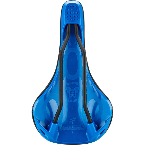La selle est optimisée pour la descente et le freeride. Lors du développement, une attention particulière a été accordée à l’ergonomie et aux exigences de la piste de course : bonne maniabilité, forme optimisée pour passer rapidement de la position assise à la position debout.
