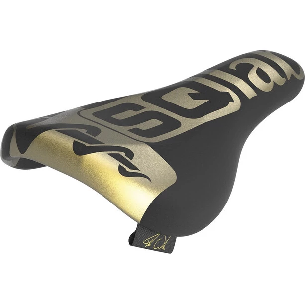 Le 6OX Trial Fabio Wibmer est disponible en noir et or. Ce modèle s’adapte à sa forme sur tous les vélos de trial, les vélos tout-terrain et les BMX. La forme aplatie de la selle offre une surface maximale en cas d’impact, ce qui réduit la pression due à l’augmentation de la surface. Les flancs de la selle sont conçus pour offrir la plus grande surface de contact possible pour les figures et en même temps pour ne pas exercer de pression ponctuelle sur les cuisses en cas de chute. Le nez court et arrondi de la selle, combiné au système de trépied, permet une liberté de mouvement maximale sur le vélo. Le matériau de rembourrage a été adapté aux exigences du vélo de trial et dispose d’un rembourrage supplémentaire. La couverture est constituée d’un matériau robuste.