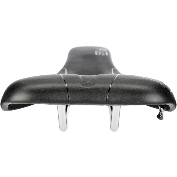 Le nez de selle de la 611 est environ 4 mm plus large que celui de la 612, mais il est aussi plat et conçu avec une surface de contact aussi large que possible pour soulager la pression, en particulier lors de longues montées sur le terrain. Le matériau de rembourrage a été spécialement adapté aux exigences du VTT et est plus amortissant en terrain accidenté que les modèles 612 Ergowave. Les propriétés de flexion de la selle sont conçues pour un confort optimal jusqu’à 75 kg. La charge maximale ne doit pas dépasser 90 kg.