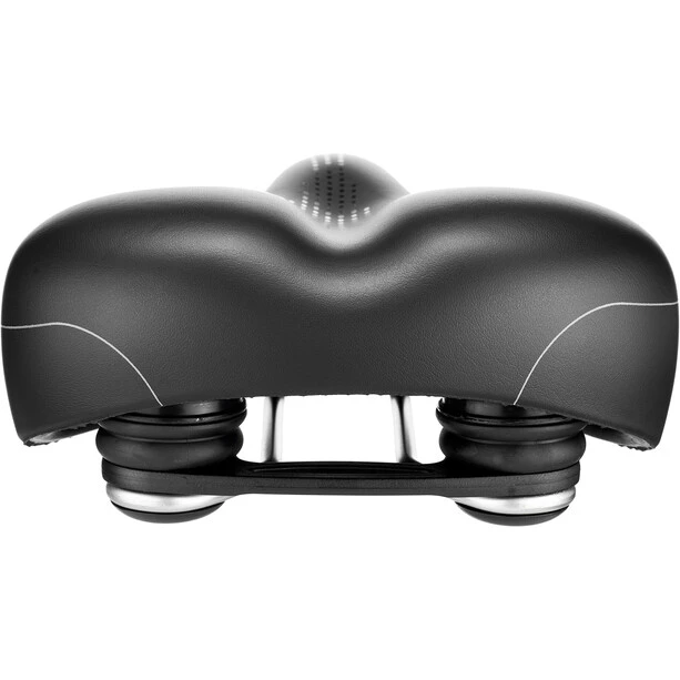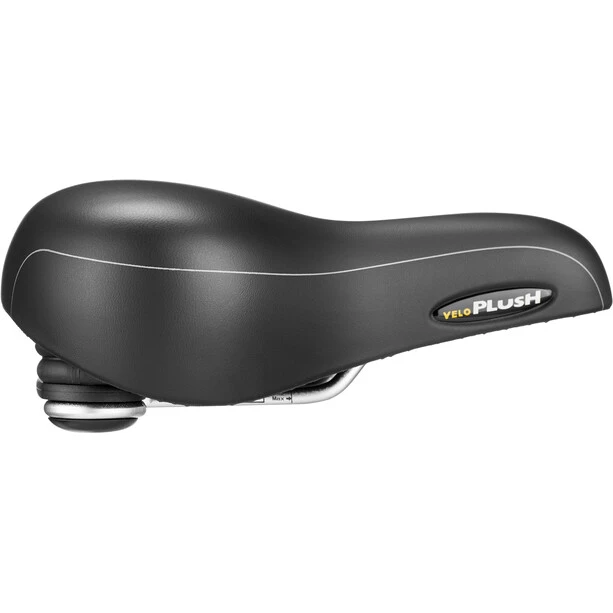 Selle latérale avec éléments de suspension en élastomère confortables et rembourrage intermédiaire Gel Base pour une répartition uniforme de la pression. Avec une housse monobloc en PU imperméable et un insert en caoutchouc kraton souple dans l’enveloppe de la selle.