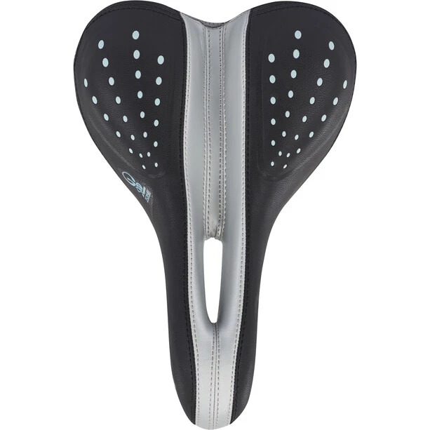 Selle de trekking en forme de selle adaptée à l’anatomie féminine et évidement de détente dans la coque de la selle. Coussinets confortables en gel avec rembourrage élastique en polyuréthane.