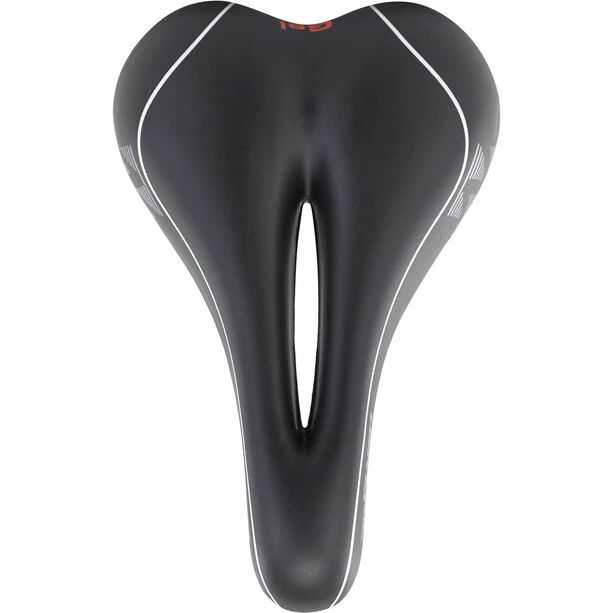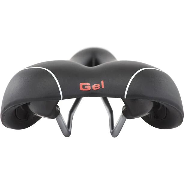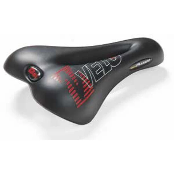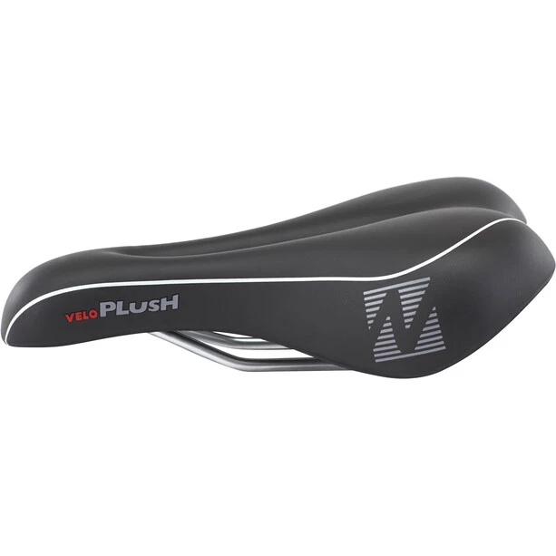 Selle de sport pour homme Velo Softgel, selle de sport extrêmement confortable avec rembourrage en gel amortissant. Imperméable à l’eau grâce à un revêtement PU imperméable et à une nouvelle technologie de production sous vide. Confort d’assise accru grâce à l’évidement d’allègement de la pression dans la zone de la selle avant.